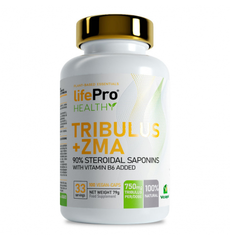 LIFE PRO TRIBULUS + ZMA es una fórmula compleja que reune en un sólo producto un estimulante de la producción de la testosterona como es el TRIBULUS TERRESTRIS de máxima calidad, con un 90% de saponinas, con un complejo vitamínico y mineral como es el ZMA (Zinc, Magnesio y vitamina B6) que estimula el metabolismo para el crecimiento de tus músculos de manera natural.