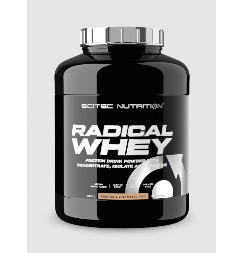 Radical Whey es una auténtica mezcla cremosa de proteína de concentrado y aislado de suero de leche con valiosos aminoácidos y creatina añadidos. Los aminoácidos y el monohidrato de creatina añadidos la convierten en la opción ideal para la suplementación proteica después del entrenamiento y como una excelente opción para la ingesta de proteínas antes de dormir.