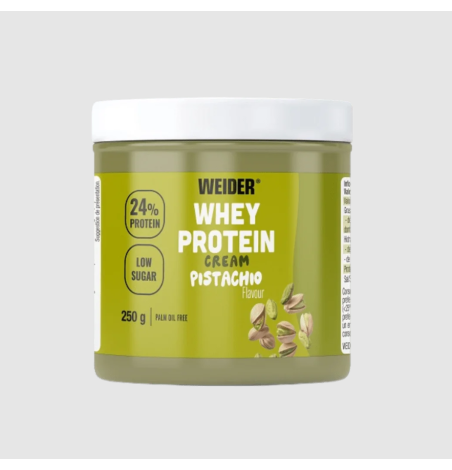 Disfruta del equilibrio perfecto entre nutrición y placer con Weider Whey Protein Cream sabor Pistacho, una deliciosa crema proteica ideal para tus desayunos, meriendas o recetas fitness.