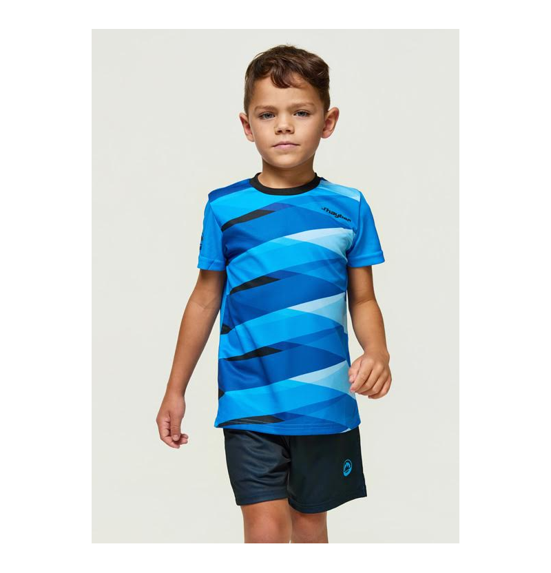 El conjunto J’Hayber Line Blue es un equipamiento deportivo infantil con una estética fresca y dinámica, ideal para pequeños deportistas.