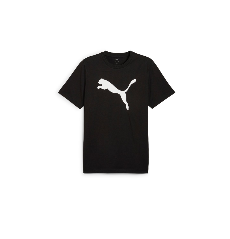 Su diseño en color blanco incorpora el icónico logo del felino en gran tamaño en la parte frontal, aportando un toque moderno y dinámico. El corte clásico con cuello redondo y manga corta garantiza un ajuste cómodo y fácil de combinar con cualquier prenda, desde jeans hasta pantalones deportivos.