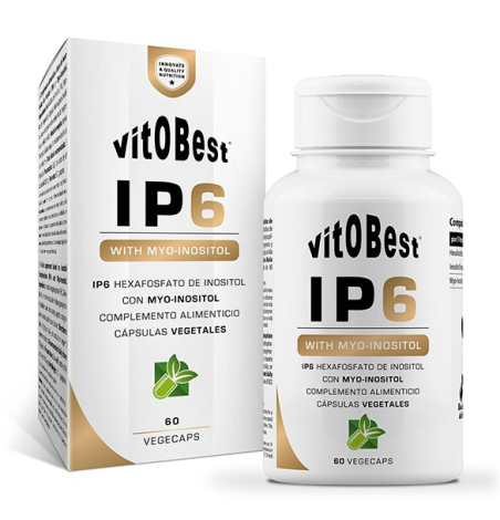IP6, de Vitobest®, es un complemento alimenticio a base de IP6 e Inositol (Myo-Inositol), para fortalecer y potenciar el sistema inmunitario. Esta fórmula maximiza los beneficios del IP6 gracias a la combinación con el Inositol, siendo de gran importancia la proporción entre los diferentes componentes.