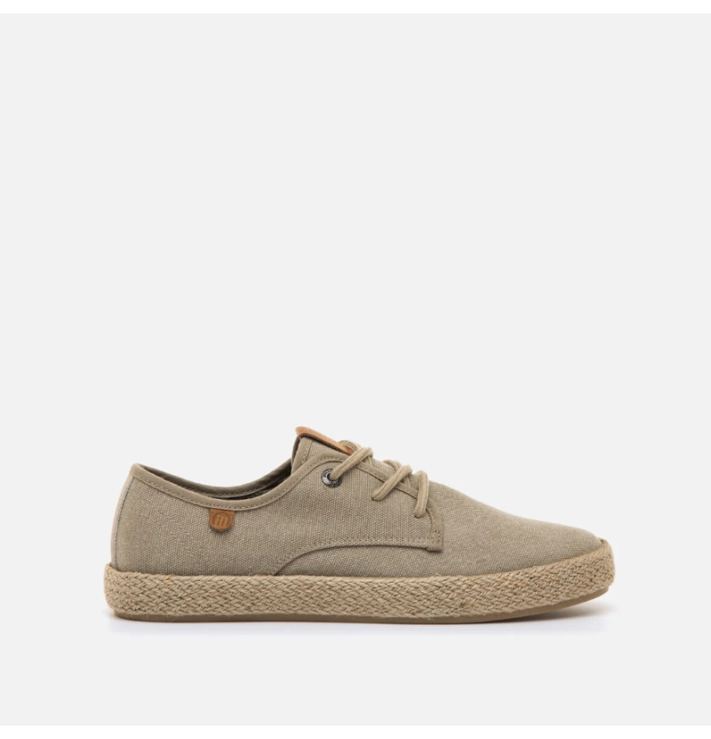 Zapato casual de color arena para hombre de la marca Mustang, modelo Napoli de estilo veraniego. Su diseño combina materiales reciclados con detalles sencillos y una suela de efecto yute trenzado que refuerza su estética natural. Las plantillas estampadas con tecnología Starfit mejoran la comodidad en cada paso, y los cordones a tono completan un calzado fresco, ideal para los días cálidos. Con certificado VEGANO sellado por INESCOP, el cual garantiza que la naturaleza química principal del material no se corresponde con fibras de origen animal.